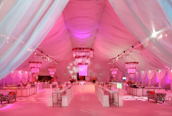 A few options include: globe chandeliers, tent liners, leg drapes, Italian market lights, side curtains, sleeved legs, Chinese paper lanterns, fencing, ropes, colored lighting, led furniture, pipe and drape, lounge furniture, and more.